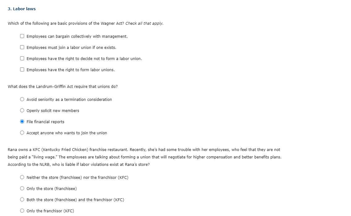 Solved 3 Labor Laws Which Of The Following Are Basic Chegg Com